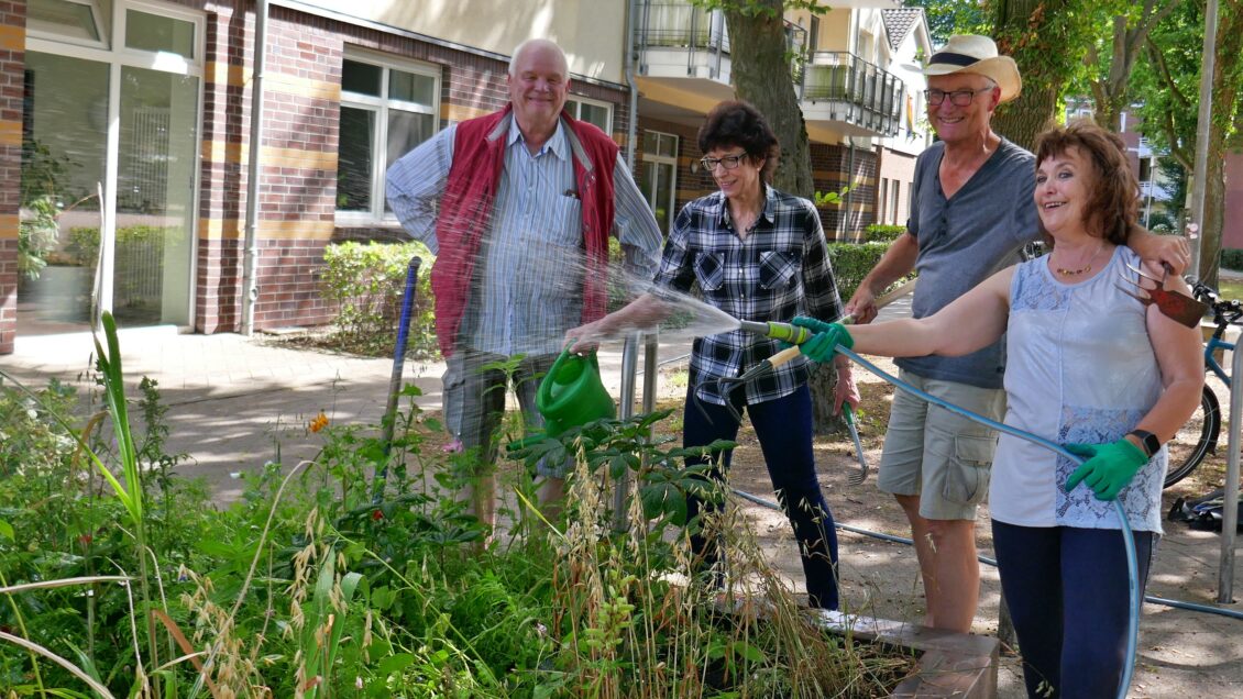 Das ehrenamtlich tätige Bloherfelder Betreuerteam für den Stadtteilgarten auf dem Marktplatz hat während des Sommers erfolgreich gewirkt. In den 4 Abteilungen „Erdfrüchte“ (Silvia), „Kohl und Hülsenfrüchte“ (Gudrun), „Naturgarten“ (Reinhard) und „Historisches“ (Martin) wurde durch die Vereinsmitglieder ganze Arbeit geleistet. Von der Beschaffung der Gartengeräte einschließlich regelmäßiger Bewässerung (60m Gartenschlauch mussten gebändigt werden!) über hacken und jäten auf der Anlage bis hin zur Ernte und Verteilung der Früchte war das Team engagiert ständig im Einsatz. Das Beet entwickelte sich prächtig und war zugleich ein kommunikativer Treffpunkt im Stadtteil. Die Bewohner aus der unmittelbaren Nachbarschaft freuten sich über selbstgeerntete Radieschen, Kartoffeln, Kohlrabi und mehr – alles frisch und in Bio-Qualität.
